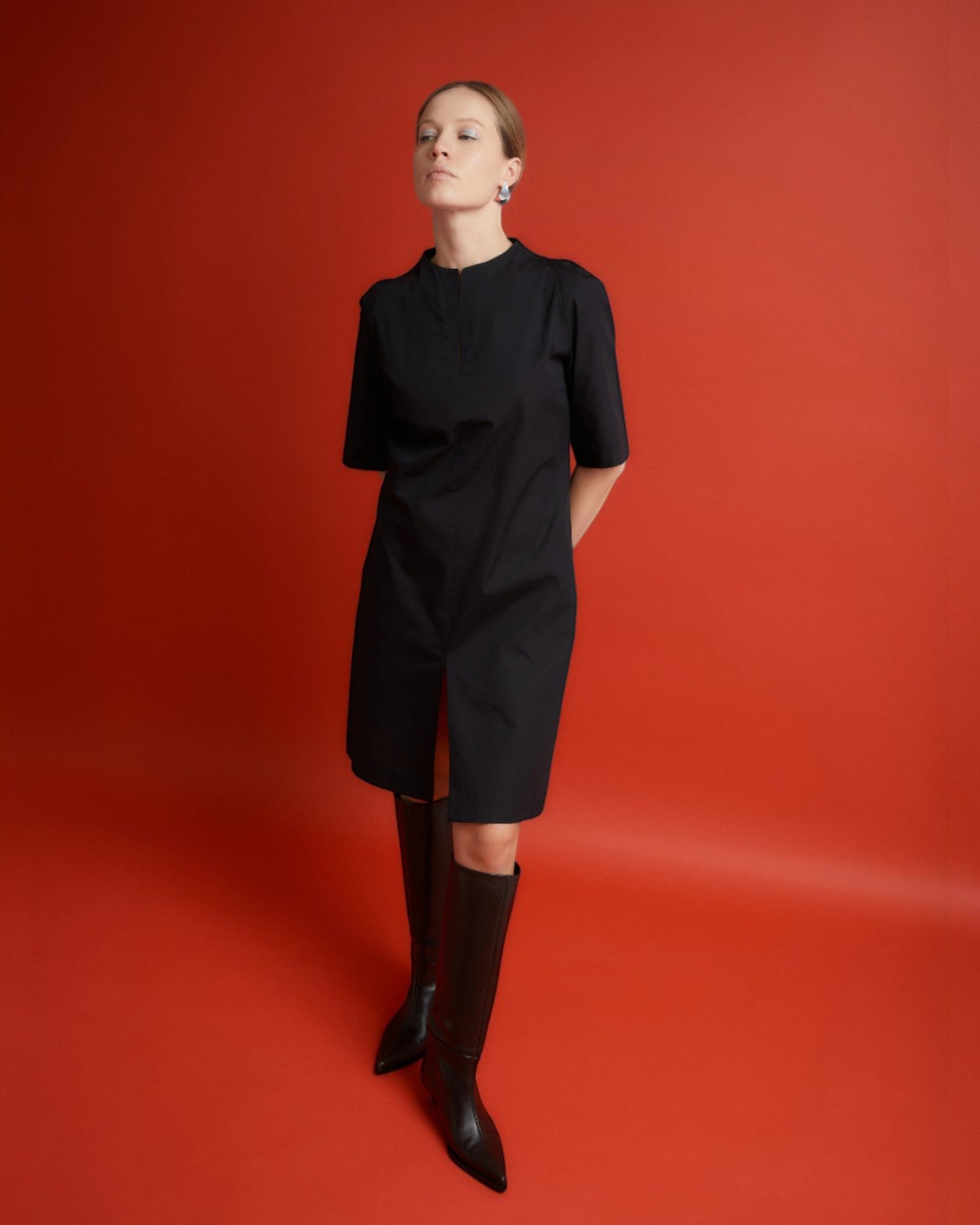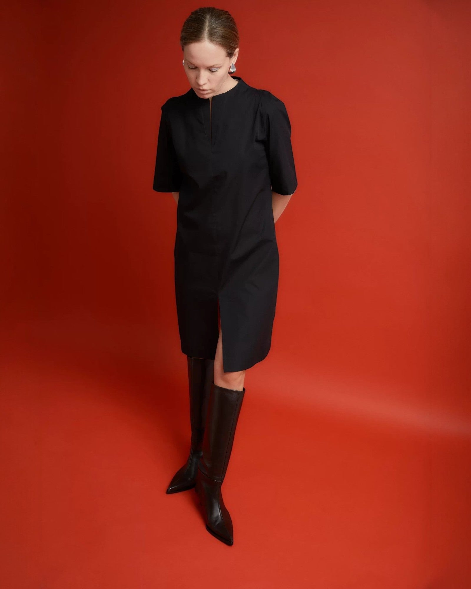 Rochie elegantă din bumbac organic, midi, neagră
